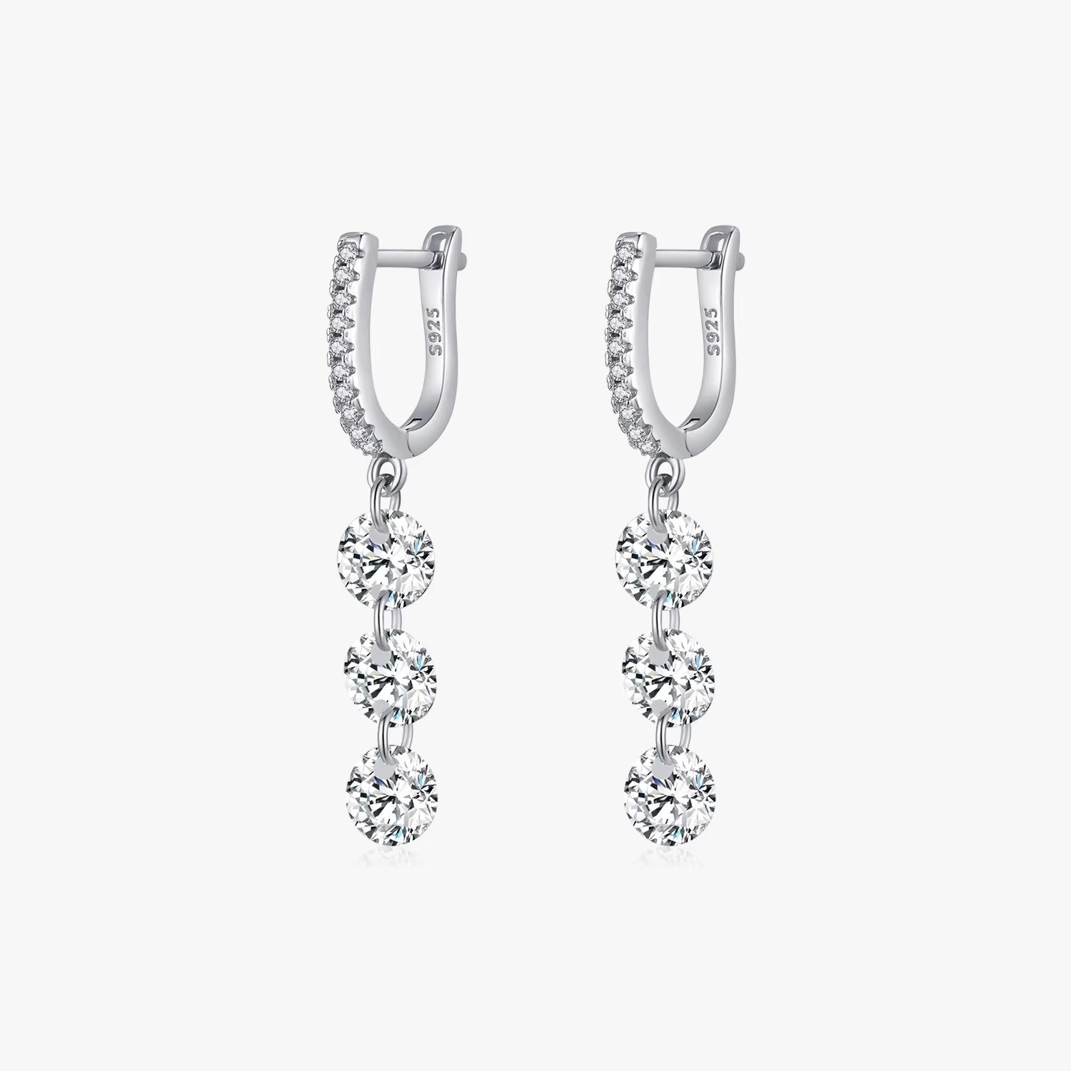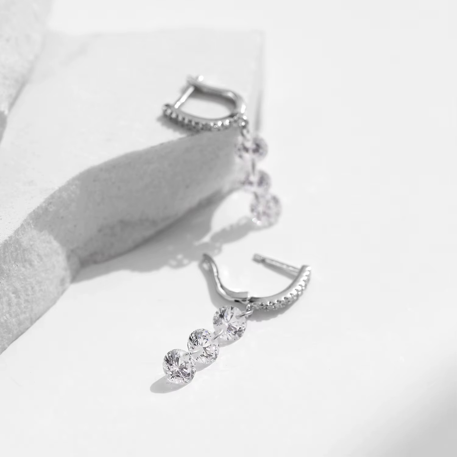 Let your style shine with these Elegant CZ Chain Drop Earrings. Crafted in genuine 925 sterling silver, each earring features a row of three sparkling round-cut cubic zirconia stones that catch the light with every move. The refined huggie-style hoops are adorned with delicate pave CZ detailing for added shimmer.