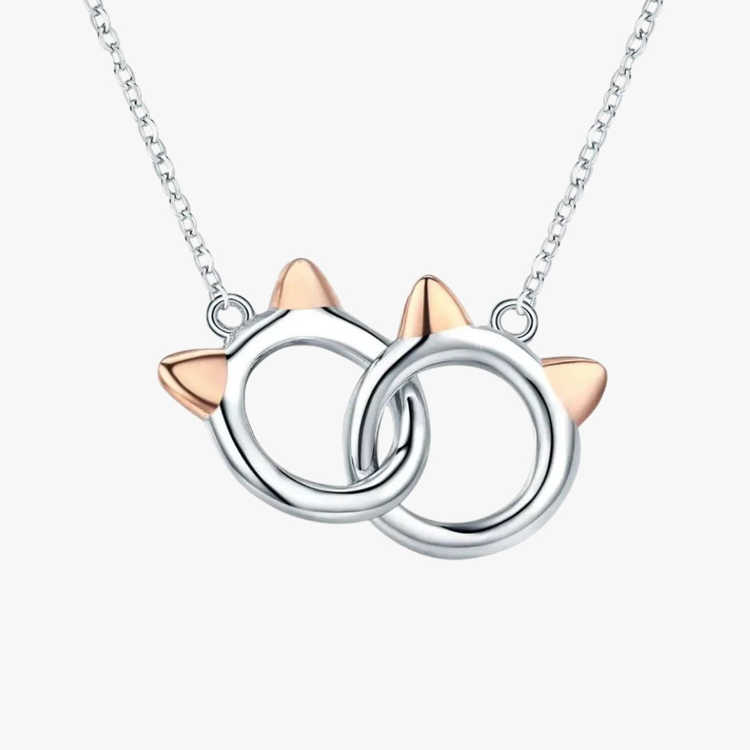 Connected Cats Pendant Necklace – 925 Sterling Silver & Rose Gold Detail