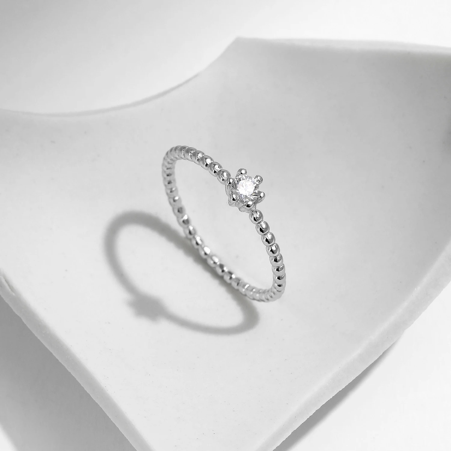 Delicate brilliance with timeless appeal. The 0.10CT D Color Moissanite Beaded Ring is crafted in solid 925 sterling silver and set with a refined round brilliant-cut moissanite designed to capture light with exceptional fire.
